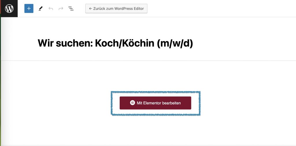 Wähle die Jobseite, die du bearbeiten möchtest, indem du darauf klickst. Klicke dann auf den Button „Mit Elementor bearbeiten”.